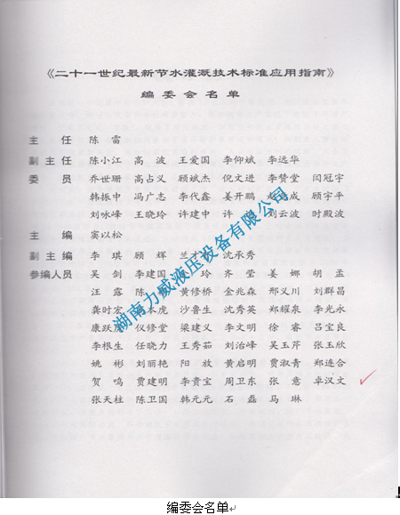 熱烈祝賀我司董事長周衛(wèi)東先生、技術(shù)顧問張意先生加入《二十一世紀最新節(jié)水灌溉技術(shù)標準應(yīng)用指南》編委會參編組員。