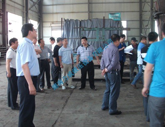 考察團領導與我廠員工,就節(jié)能型側(cè)翻式拍門相關生產(chǎn)問題進行了深入探討。