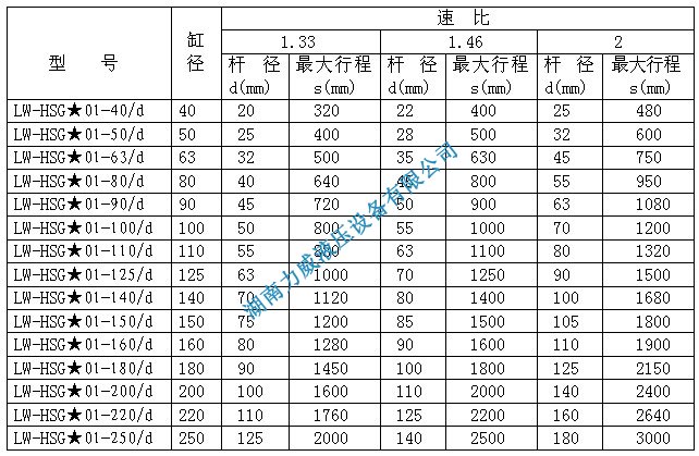 注:1、速比指活塞有效面積與活塞桿腔有效面積之比;